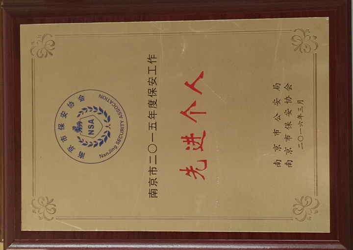 江蘇中祥保安公司榮獲南京市2015年度保安工作先進個人